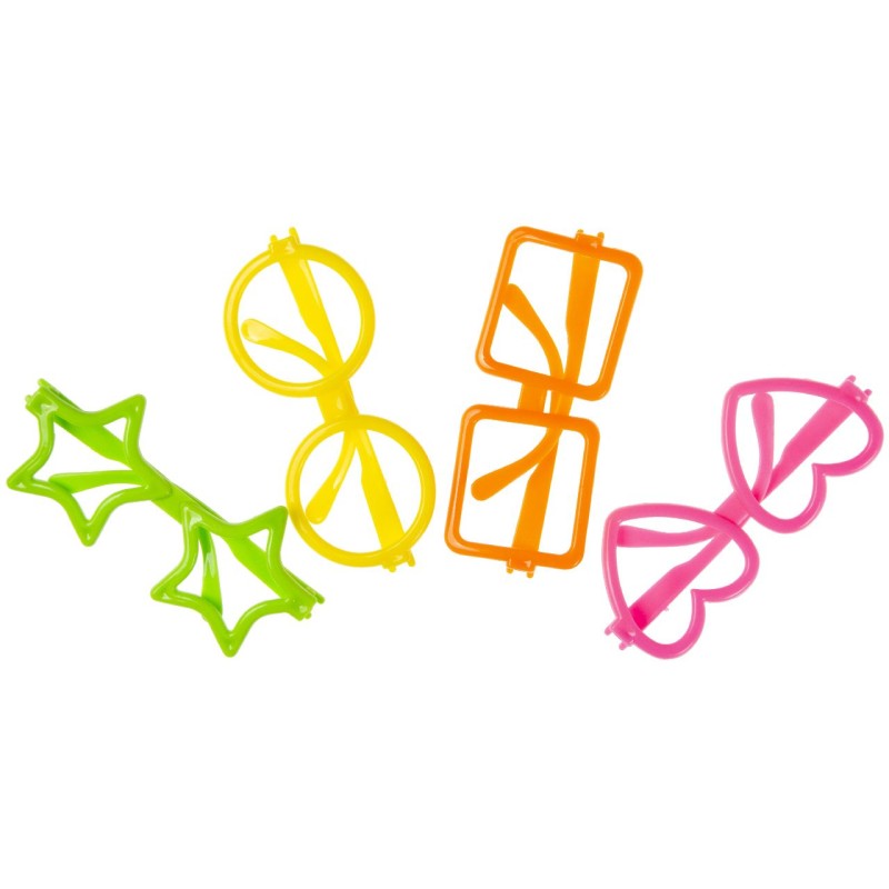 πΆοΈ De set bestaat uit 4 feestbrillen in vrolijke neonkleuren.
