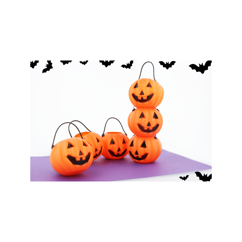 Grappige kleine emmertjes, in de vorm van een pompoen, om snoepjes of iets anders in te doen.