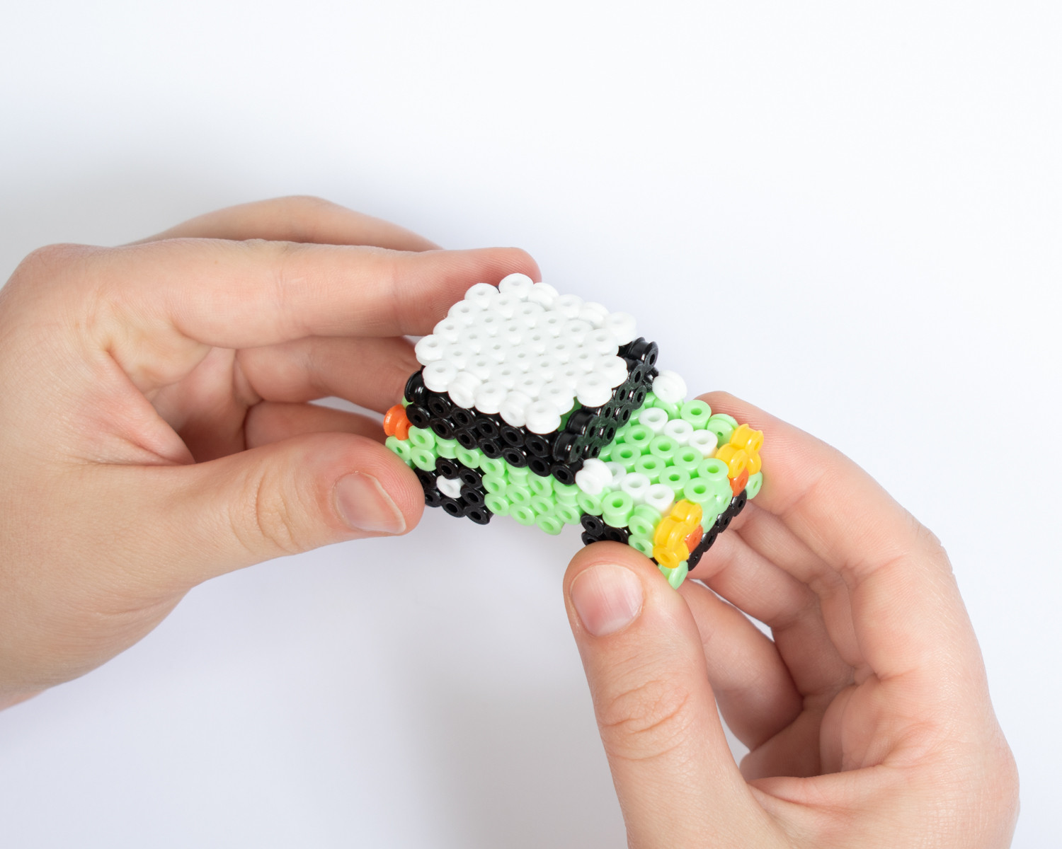 Leg er een transparant strijkkralenbordje op en leg de strijkkralen op de plek.