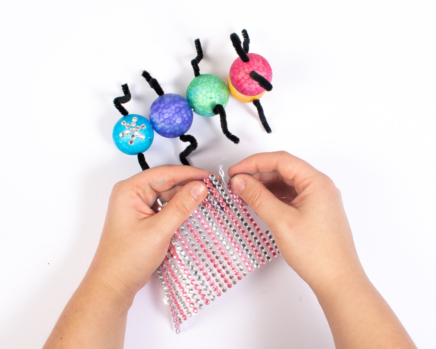 Versier de spin met glittersteentjes of glitterlijm.