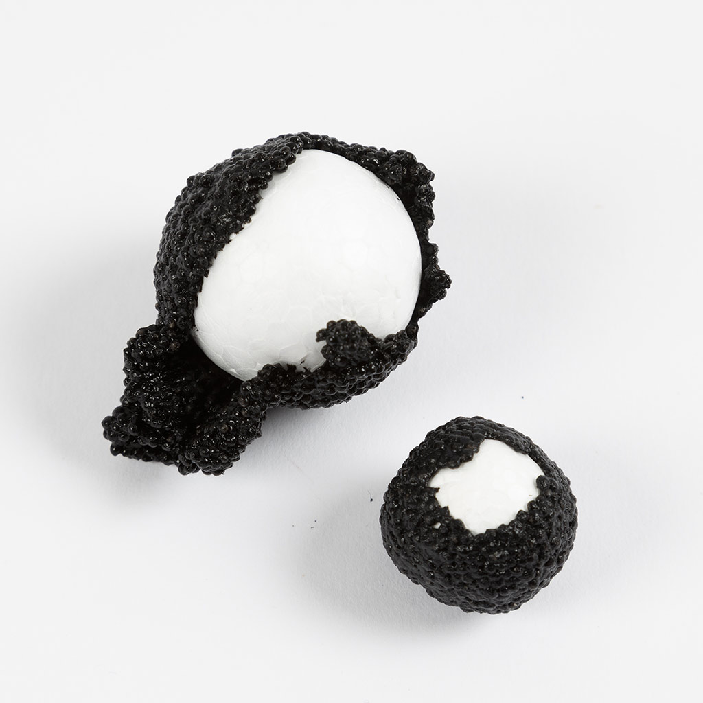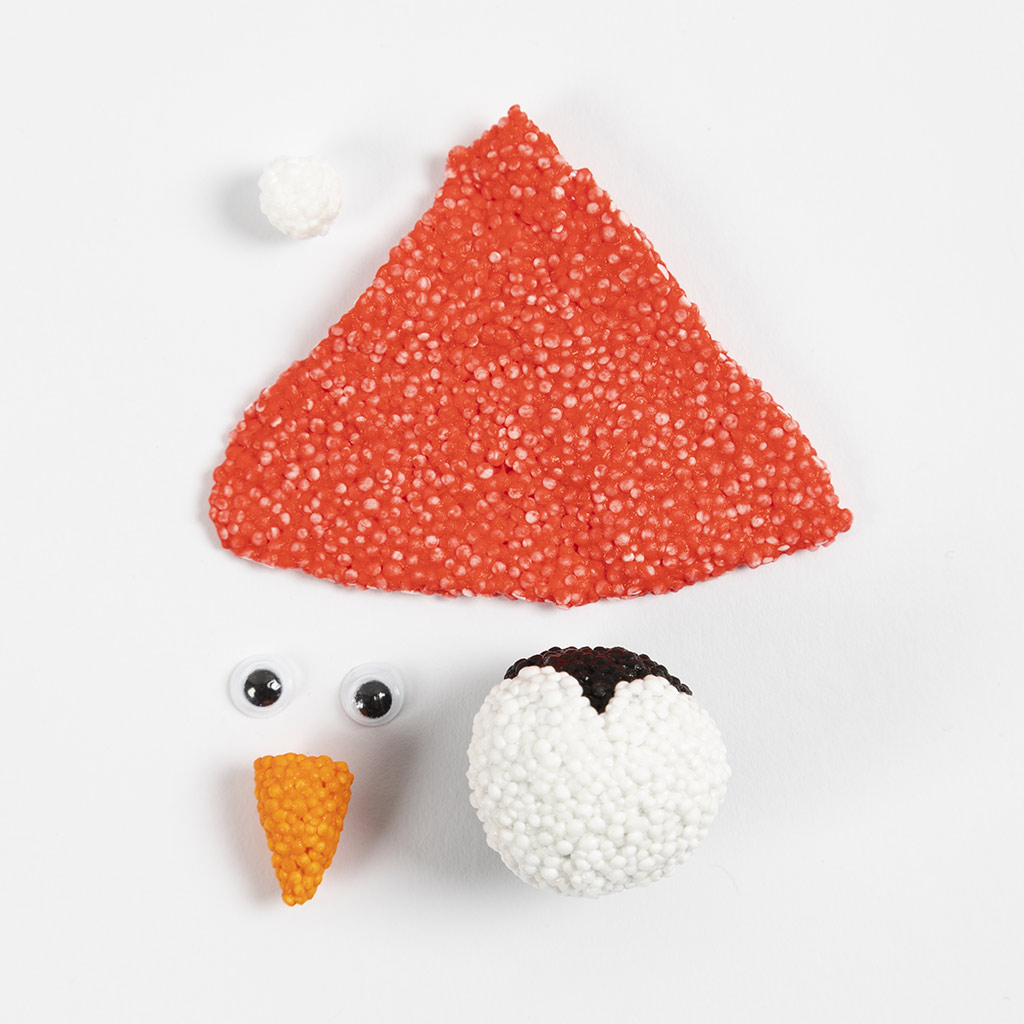 Open de kunststof deelbare bal en leg er een laag Foam Clay® in. Zet de pinguïn stevig in de Foam