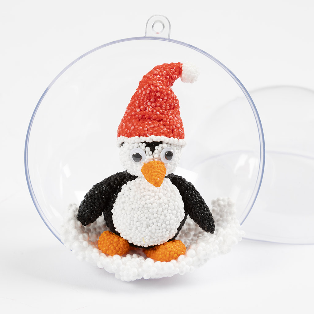 Maak een pinguïn van Foam Clay® en zet hem in een kunststof deelbare bal als leuke kerstdecoratie.