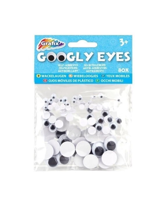 Maak de delen voor het gezicht: een driehoekje voor de snavel en voor de oogjes gebruik je wiebeloogjes. Maak dan een platte driehoek voor de hoed.