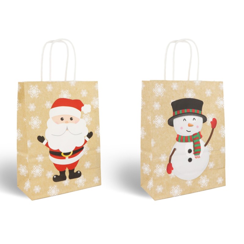 Geef je kerstcadeaus een extra feestelijke touch met deze charmante papieren cadeau tasjes! Gemaakt van stevig bruin kraftpapier en voorzien van handige hengsels, zijn ze perfect om kleine geschenken stijlvol te verpakken.