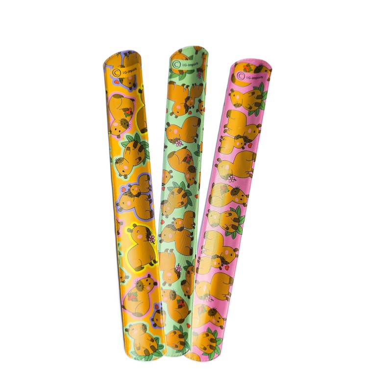 De armbanden worden geleverd met verschillende capibara afbeeldingen, wat elke bestelling een verrassend karakter geeft. Met een lengte van 22 cm. passen ze comfortabel om vrijwel iedere pols.