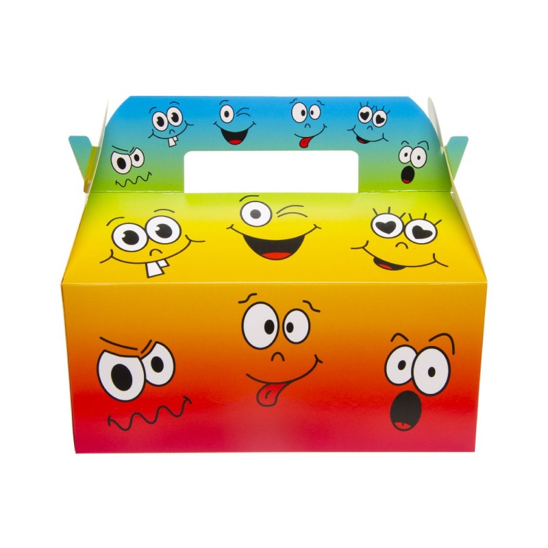 Mooie grote menu box (happy meal doos) met grappige emoji gezichtjes als opdruk.