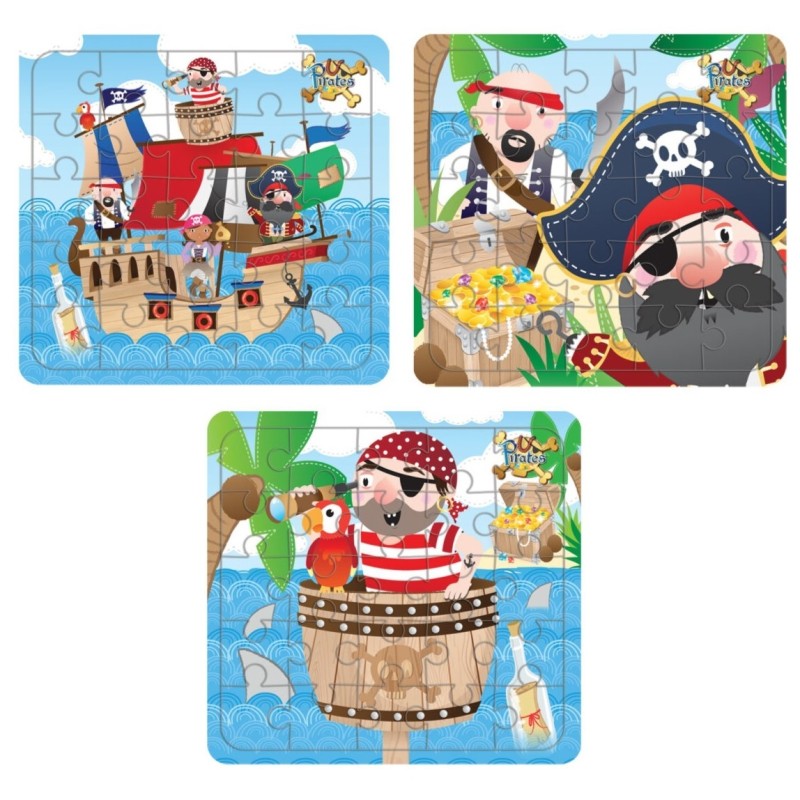 De puzzel is verkrijgbaar in 3 stoere piratenuitvoeringen, die assorti worden geleverd – een verrassing bij elke bestelling!