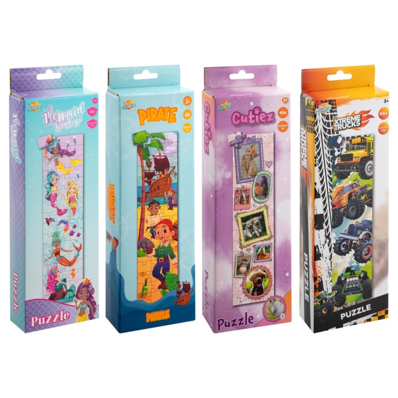 De torenpuzzel is verkrijgbaar in stoere jongensvarianten (Piraten en Xtreme Trucks) en schattige meisjesdesigns (Cutiez en Zeemeerminnen), voor ieder wat wils!
