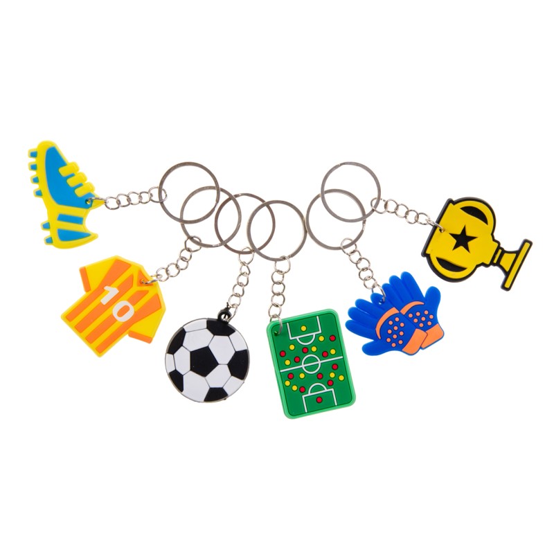 Een sleutelhanger met verschillende voetbal figuren is leuk als traktatie of uitdeelcadeautje bij je voetbal feestje.