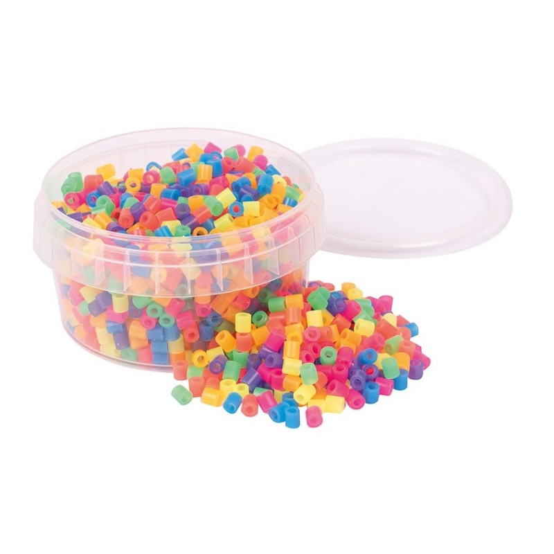 1000 neonkleur strijkkralen in een handig kunststof opberg bakje.