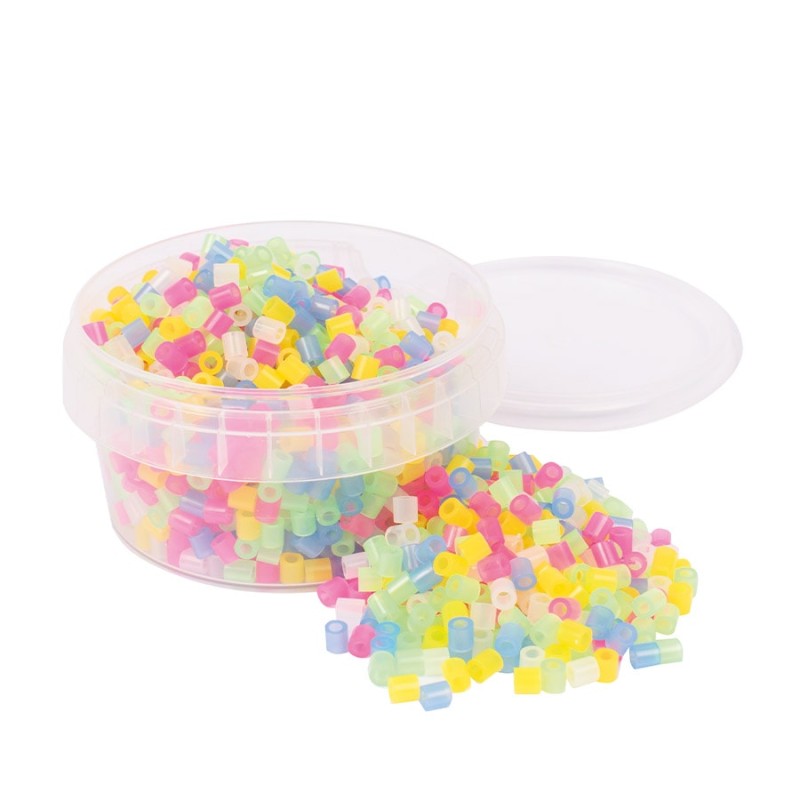 1000 transparant gekleurde strijkkralen in een handig kunststof opberg bakje.