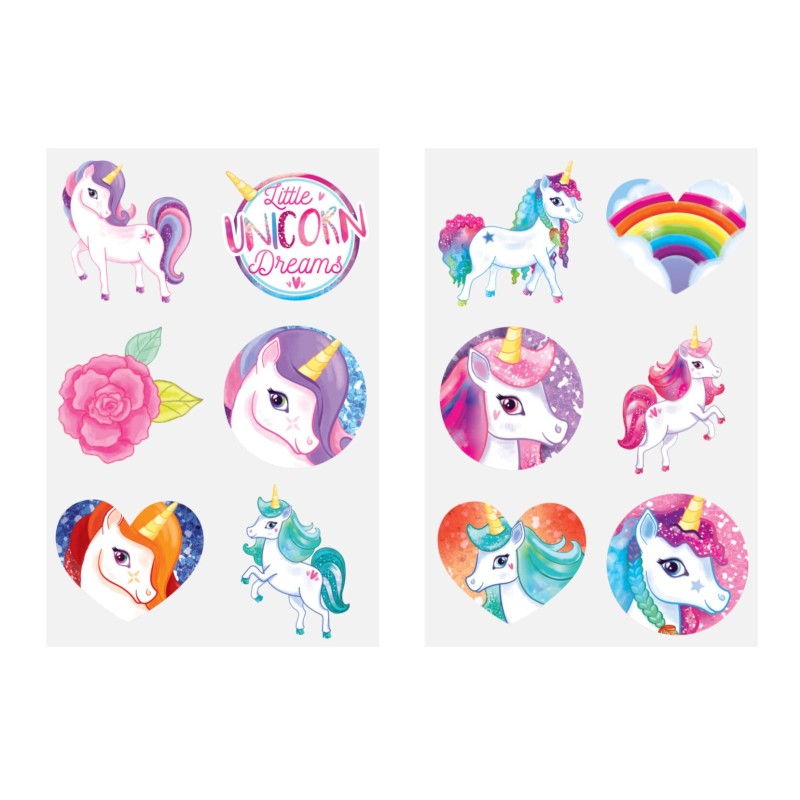 Deze mooie unicorn tatoeages zijn perfect als bedankje, als prijsje bij een loterij of als cadeau.