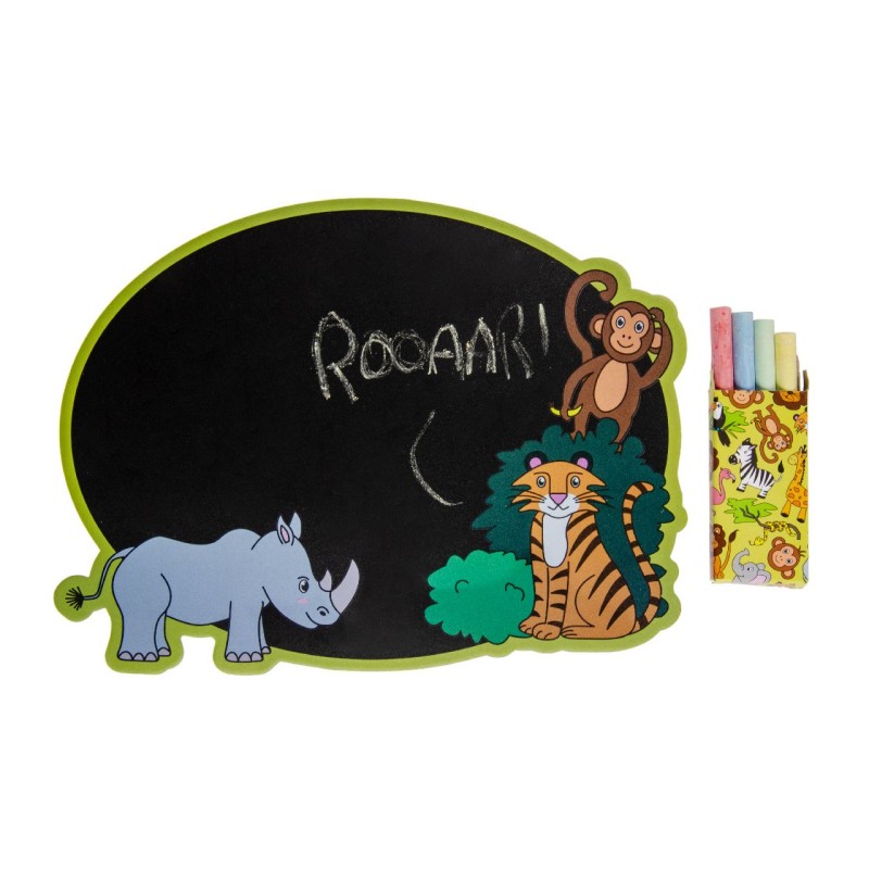 Een mooi krijtbord met leuke jungle afbeeldingen.